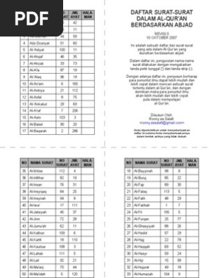 Daftar Surat Dalam Al Quran Berdasarkan Abjad Pdf